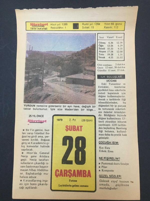 28 ŞUBAT 1979 -TAKVİM YAPRAĞI-DOĞUM GÜNÜ HEDİYESİ-HÜRRİYET TAKVİMİ,ÇOCUĞA İSİM,SPOR DÜNYASI DOĞAN ACARBAY,OFUN KURTULUŞU,GÜVEN PARTİSİNİN KURULUŞU 1973,ORD PROF KAZIM İSMAİL GÜRKANIN ÖLÜMÜ 1972 başlıklı ürün, Efemera, Müzik, Sinema > Belge ve Evraklar > Takvimler kategorisi altında İkinci El olarak satılmaktadır.