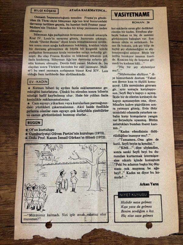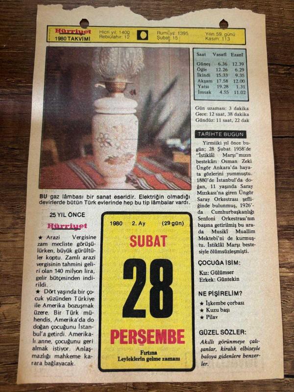 28 ŞUBAT 1980 - TAKVİM YAPRAĞI - DOĞUM GÜNÜ HEDİYESİ - HÜRRİYET TAKVİMİ - VASİYETNAME ADLI ROMAN - Ofun kurtuluşu - Cumhuriyetçi Güven Partisi'nin kuruluşu (1973) - Ordu Prof. Kazım İsmail Gürkan'ın ölümü (1972), 3 ay önce satışa sunulmuştur.