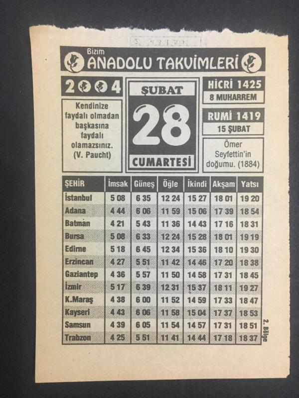 28 ŞUBAT 2004 -TAKVİM YAPRAĞI-DOĞUM GÜNÜ HEDİYESİ-BİZİM ANADOLU TAKVİMLERİ,ÖMER SEYFETTİNİN DOĞUMU 1884,BİLİYORMUYDUNUZ,KIYAMETE KADAR ÇAN SESİ DİNLEMEK,PRATİK BİLGİLER,ÇİKOLATA ERİTMEK, en son 8 ay önce güncellenmiştir.