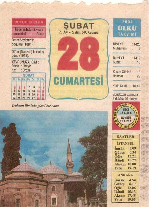 28 ŞUBAT 2004 TAKVİM YAPRAĞI, en son 1 yıl önce güncellenmiştir.
