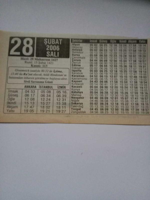 28 Şubat 2006-Orijinal Takvim Yaprağı-Doğum Günü-Söz,Nişan,Nikâh,Düğün ve Önemli Günler Hediyesi-ERAŞ Hizmet Takvimi-Ayet-Hadis(Sivil Savunma Günü)-Safer Hilali-Sivil Savunma-Vecizeler-Çocuğunuza İsim:Ufuk,Ülkü, en son 3 ay önce güncellenmiştir.