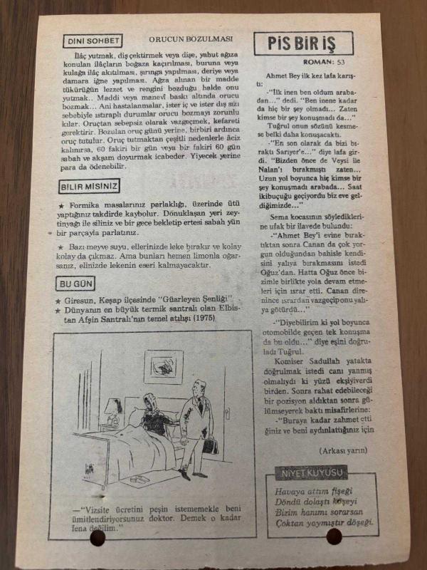 28 TEMMUZ 1979 - TAKVİM YAPRAĞI - DOĞUM GÜNÜ HEDİYESİ - HÜRRİYET TAKVİMİ - PİS BİR İŞ ROMANI - Giresun, Keşap ilçesinde "Güarleyen Şenliği" - Dünyanın en büyük termik santralı olan Elbistan Afşin Santralı'nın temel atılışı (1975) başlıklı ürün, Efemera, Müzik, Sinema > Belge ve Evraklar > Takvimler kategorisi altında İkinci El olarak satılmaktadır.