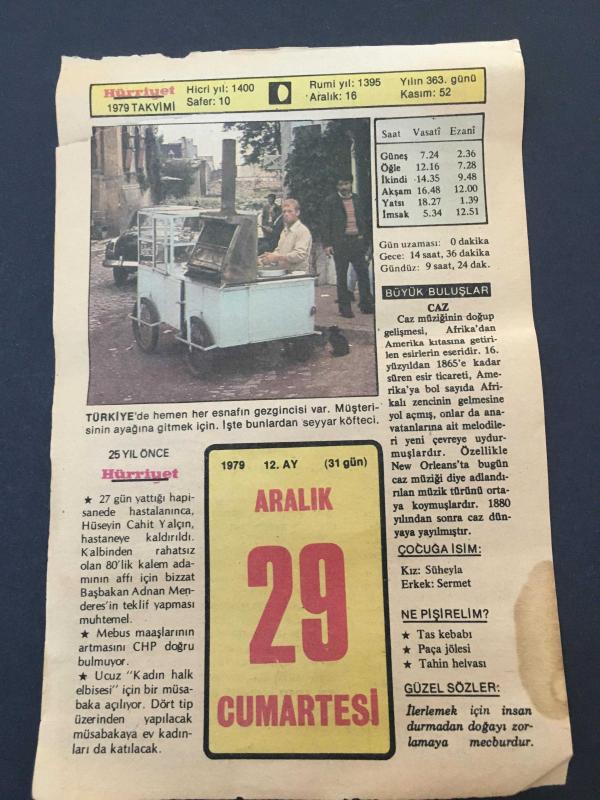 29 ARALIK 1979 -TAKVİM YAPRAĞI-DOĞUM GÜNÜ HEDİYESİ-HÜRRİYET TAKVİMİ,ÇOCUĞA İSİM ,TARİH SOHBETİ İSYAN EDEN BEY,ÇERKES ETHEMİN KÜTAHYADA MİLLİ KUVVETLERE KARŞI SALDIRIYA GEÇMESİ 1920 başlıklı ürün, Efemera, Müzik, Sinema > Belge ve Evraklar > Takvimler kategorisi altında İkinci El olarak satılmaktadır.