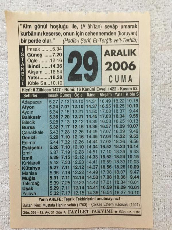 29 ARALIK 2006-TAKVİM YAPRAĞI-DOĞUM GÜNÜ HEDİYESİ-FAZİLET TAKVİMİ, 1 yıl önce satışa sunulmuştur.