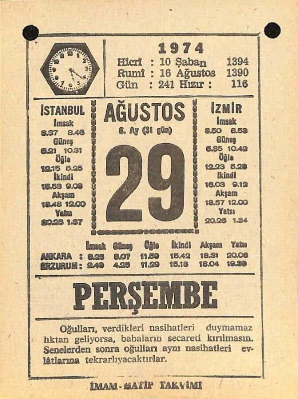 29 Ağustos 1974 Takvim Yaprağı - Doğum Günü Hediyesi EFM(N)12176, en son 20 gün önce güncellenmiştir.