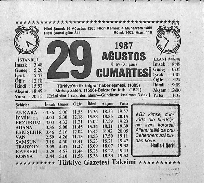 29 Ağustos 1987 Takvim Yaprağı - Doğum Günü Hediyesi EFMN13933, en son 21 gün önce güncellenmiştir.