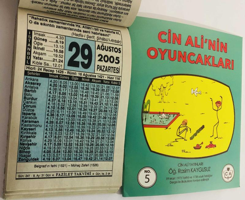 29 Ağustos 2005 hediyelik orijinal Fazilet takvim yaprağı (Cin Ali kitabı hediyeli:), en son 7 ay önce güncellenmiştir.