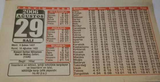 29 Ağustos 2006-Orijinal Takvim Yaprağı-Doğum Günü-Söz,Nişan,Nikâh,Düğün ve Önemli Günler Hediyesi-Bizim Anadolu Takvimleri-Ayet(Hz.Ali(r.a.))-Kanuni Sultan Süleyman Han'ın Mohaç Zaferi(1526)-Beşir,Hilal-Öyle Karşıla ki; - O Erler Ki..., en son 2 ay önce güncellenmiştir.