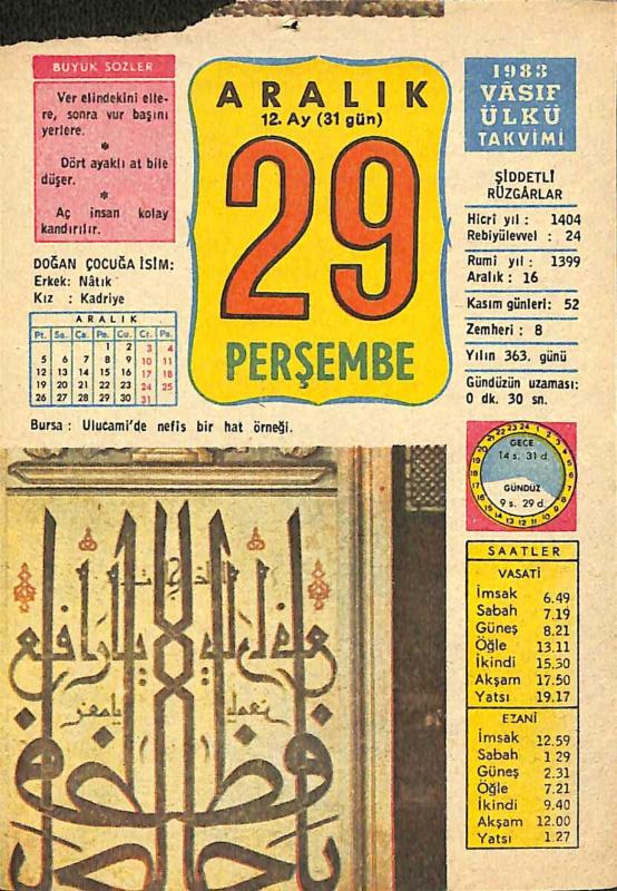 29 Aralık 1983 Takvim Yaprağı - Doğum Günü Hediyesi EFMN13693, en son 18 gün önce güncellenmiştir.
