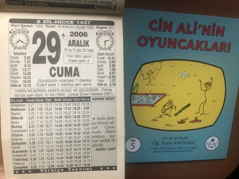 29 Aralık 2006 hediyelik orijinal Türkiye gazetesi takvim yaprağı (Cin Ali kitabı hediyeli:), 4 yıl önce satışa sunulmuştur.