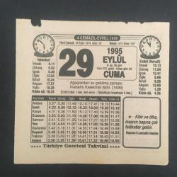 29 EYLÜL 1995 -TAKVİM YAPRAĞI-DOĞUM GÜNÜ HEDİYESİ-TÜRKİYE GAZETESİ TAKVİMİ,AĞAÇLARDAN SU ÇEKİLME ZAMANI,İNEBAHTI KALESİNİN FETHİ 1499,CUMA GÜNÜ,HAVALE, en son 8 ay önce güncellenmiştir.
