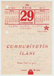 29 Ekim 1955 tarihli takvim yaprağı, Cumhuriyet’in ilanı, en son 6 ay önce güncellenmiştir.