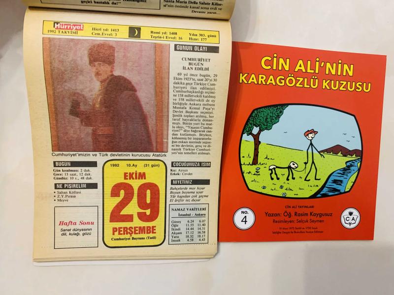 29 Ekim 1992 hediyelik orijinal Hürriyet takvim yaprağı (Cin Ali kitabı hediyeli:), en son 7 ay önce güncellenmiştir.