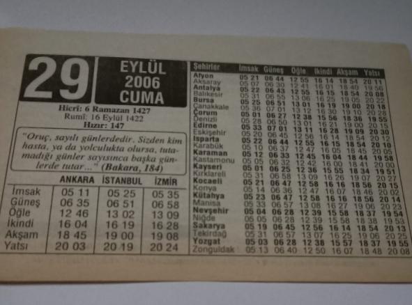 29 Eylül 2006-Orijinal Takvim Yaprağı-Doğum Günü-Söz,Nişan,Nikâh,Düğün ve Önemli Günler Hediyesi-ERAŞ Hizmet Takvimi-Ayet-Hadis(Bakara,184)-Ef'al-i Mükellefin-Çocuğunuza İsim:Kadri,Kadriye, en son 4 ay önce güncellenmiştir.