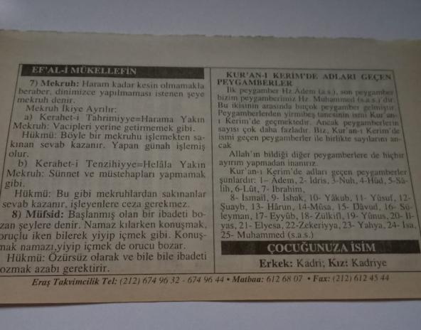29 Eylül 2006-Orijinal Takvim Yaprağı-Doğum Günü-Söz,Nişan,Nikâh,Düğün ve Önemli Günler Hediyesi-ERAŞ Hizmet Takvimi-Ayet-Hadis(Bakara,184)-Ef'al-i Mükellefin-Çocuğunuza İsim:Kadri,Kadriye başlıklı ürün, Efemera, Müzik, Sinema > Belge ve Evraklar > Takvimler kategorisi altında İkinci El olarak satılmaktadır.