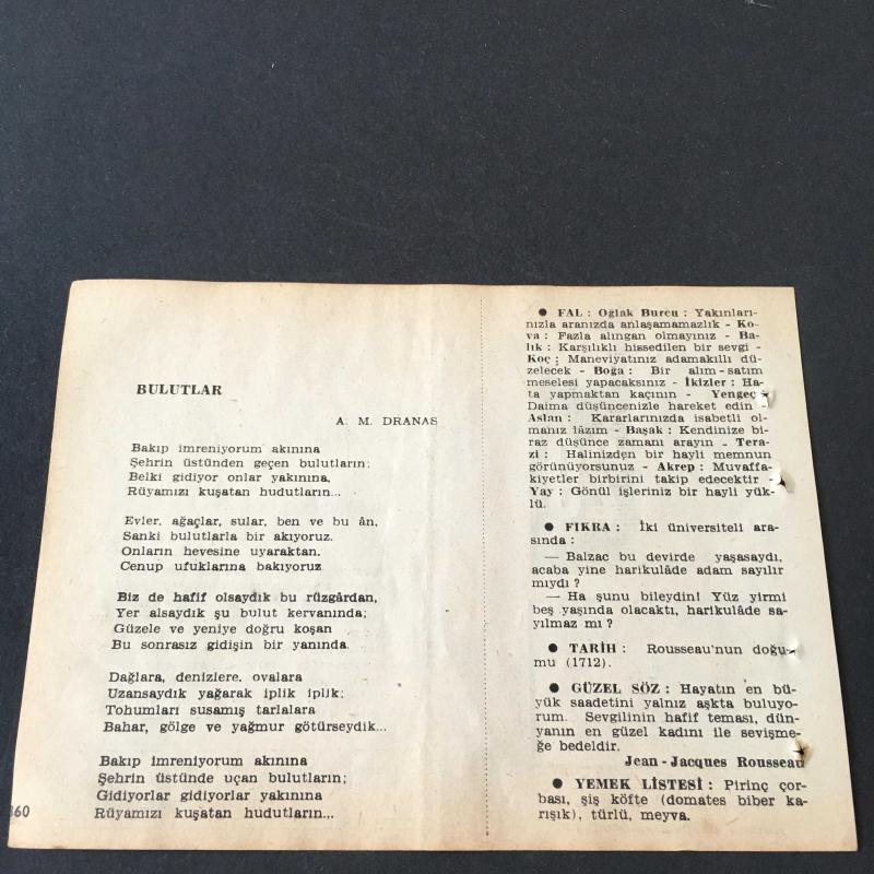 29 HAZİRAN 1958 -TAKVİM YAPRAĞI-DOĞUM GÜNÜ HEDİYESİ-AJANS-TÜRK ŞİİRLİ VE SAATLİ TÜRKİYE TAKVİMİ,K.K.KAMU,A.M.DRANAS,FAL,FIKRA,ROUSSEAUNUN DOĞUMU 1712,GÜZEL SÖZ,YEMEK LİSTESİ başlıklı ürün, Efemera, Müzik, Sinema > Belge ve Evraklar > Takvimler kategorisi altında İkinci El olarak satılmaktadır.
