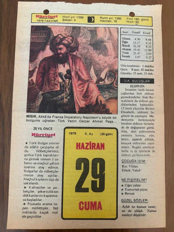 Orijinal takvim yaprağıdır.