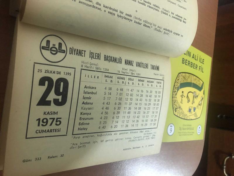 29 Kasım 1975 hediyelik orijinal Diyanet takvim yaprağı (Cin Ali kitabı hediyeli:), en son 7 ay önce güncellenmiştir.