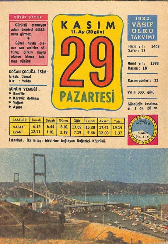 29 Kasım 1982 Takvim Yaprağı - Doğum Günü Hediyesi EFM(N)11890, en son 20 gün önce güncellenmiştir.