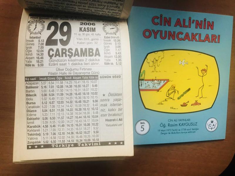 29 Kasım 2006 hediyelik orijinal Türkiye gazetesi takvim yaprağı (Cin Ali kitabı hediyeli:), en son 8 ay önce güncellenmiştir.