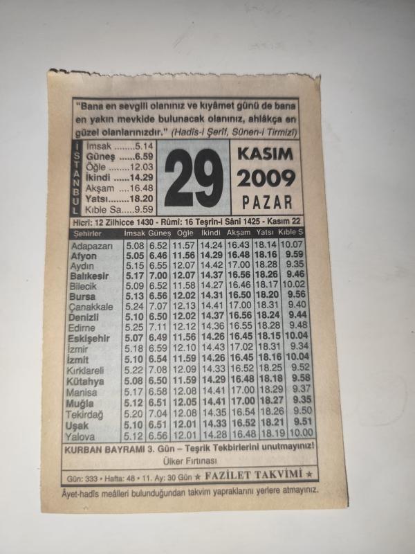 29 Kasım 2009-Orijinal Takvim Yaprağı-Doğum Günü-Söz,Nişan,Nikâh,Düğün ve Önemli Günler Hediyesi-Fazilet Takvimi-Ayet(Hadis)(Hadis-i Şerif, Sünen-i Tirmizi l)-Kurban Bayramı 3.gün, Ülker Fırtınası()-En Yakınlar En Uzaklar- Ayasofya Levhaları, en son 3 gün önce güncellenmiştir.