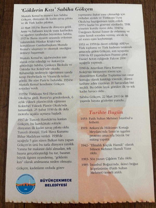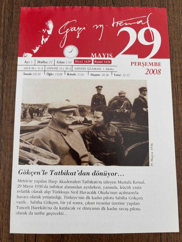 29 MAYIS 2008 - TAKVİM YAPRAĞI - DOĞUM GÜNÜ HEDİYESİ - GAZİ MUSTAFA KEMAL ATATÜRK FOTOĞRAFLI BÜYÜKÇEKMECE BELEDİYESİ TAKVİMİ - Gökçen'le Tatbikat'dan dönüyor - 'Göklerin Kızı' Sabiha Gökçen - 1453- Fatih Sultan Mehmet İstanbul'u fethetti.1985- İstanbul Boğazı'nda, ikinci boğaz köprüsünün (Fatih Sultan Mehmet) temeli atıldı. -, 3 ay önce satışa sunulmuştur.