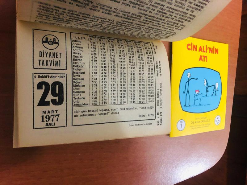 29 Mart 1977 hediyelik orijinal Diyanet takvim yaprağı (Cin Ali kitabı hediyeli:), en son 7 ay önce güncellenmiştir.