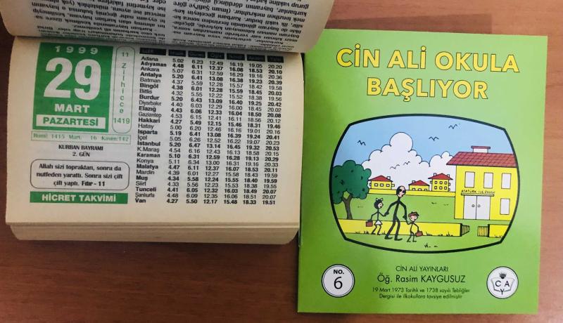 29 Mart 1999 hediyelik orijinal Hicret takvim yaprağı (Cin Ali kitabı hediyeli:) başlıklı ürün, Efemera, Müzik, Sinema > Belge ve Evraklar > Takvimler kategorisi altında İkinci El olarak satılmaktadır.