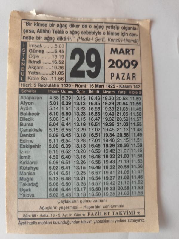 29 Mart 2009-Orijinal Takvim Yaprağı-Doğum Günü-Söz,Nişan,Nikâh,Düğün ve Önemli Günler Hediyesi-Fazilet Takvimi-Ayet(Hadis)(Hadis-i Şerif, Kenzü'l-Ummal)-Çaylakların gelme zamanı-Ağaçların yeşermesi-Haşeratın canlanması()-Hilekar,Cimri Ve Başa Kakan-Yetimleri Gözetmek, en son 23 gün önce güncellenmiştir.