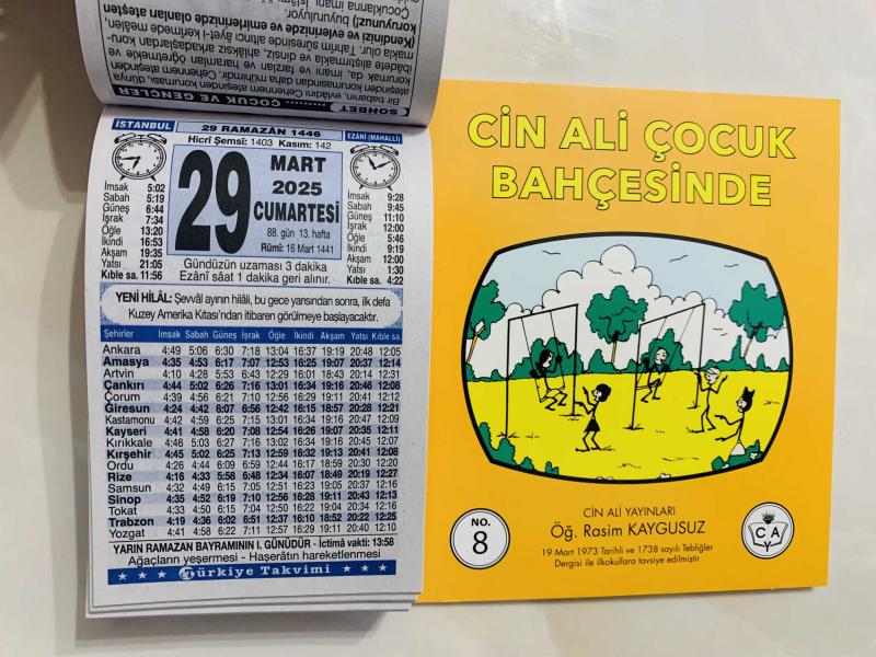 29 Mart 2025 hediyelik orijinal Türkiye takvim yaprağı (Cin Ali kitabı hediyeli:), en son 7 ay önce güncellenmiştir.