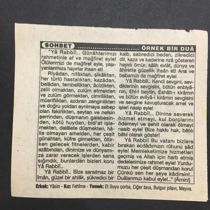 29 NİSAN 1996-TAKVİM YAPRAĞI-DOĞUM GÜNÜ HEDİYESİ-TÜRKİYE GAZETESİ TAKVİMİ,KURBAN BAYRAMININ 2. GÜNÜ,DÜNYA NÜFUS GÜNÜ,SERÇELERİN YAVRULAMA ZAMANI,ÖRNEK BİR DUA başlıklı ürün, Efemera, Müzik, Sinema > Belge ve Evraklar > Takvimler kategorisi altında İkinci El olarak satılmaktadır.