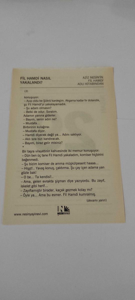 29 Nisan 2015-Orijinal Takvim Yaprağı-Doğum Günü-Söz,Nişan,Nikâh,Düğün ve Önemli Günler Hediyesi-Nesin Vakfı Takvimi-Yedi-Sekiz Paşa'nın 1. sayısı çıkıyor, sahibi ve yazıişleri müdürü O. Müstecaplı (1949). Ankara'da Zafer Alanında Devrimci Güçbirliği (Dev-Güç) tarafından düzenlenen mitinge katılıyor, aynı gün konuşmasını Doğu Perinçek'in yardımıyla Yüksel Palas'ta hazırlıyor (1968).-Fil Hamdi Nasıl Yakalandı?-Aziz Nesin'in Fil Hamdi adlı kitabından. başlıklı ürün, Efemera, Müzik, Sinema > Belge ve Evraklar > Takvimler kategorisi altında İkinci El olarak satılmaktadır.
