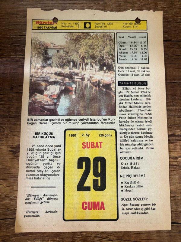 29 ŞUBAT 1980 - TAKVİM YAPRAĞI - DOĞUM GÜNÜ HEDİYESİ - HÜRRİYET TAKVİMİ - VASİYETNAME ADLI ROMAN, 3 ay önce satışa sunulmuştur.