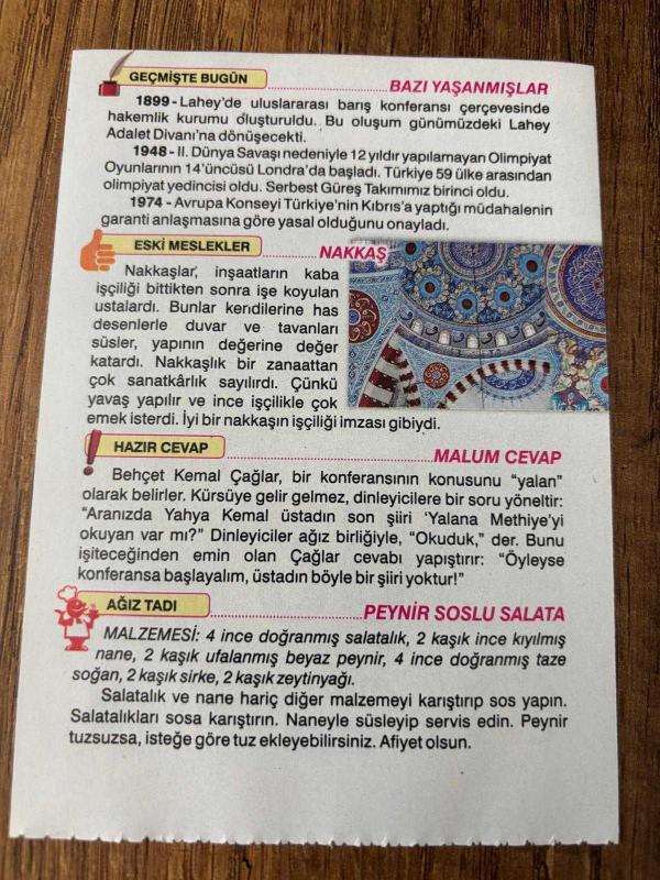 29 TEMMUZ 2020 - TAKVİM YAPRAĞI - DOĞUM GÜNÜ HEDİYESİ - BÜYÜK SAATLİ MAARİF TAKVİMİ - NAKKAŞ - PEYNİR SOSLU SALATA - 1899-Lahey'de uluslararası barış konferansı çerçevesinde hakemlik kurumu oluşturuldu - 1948 - II. Dünya Savaşı nedeniyle 12 yıldır yapılamayan Olimpiyat Oyunlarının 14'üncüsü Londra'da başladı - 1974 - Avrupa Konseyi Türkiye'nin Kıbrıs'a yaptığı müdahalenin garanti anlaşmasına göre yasal olduğunu onayladı başlıklı ürün, Efemera, Müzik, Sinema > Belge ve Evraklar > Takvimler kategorisi altında İkinci El olarak satılmaktadır.