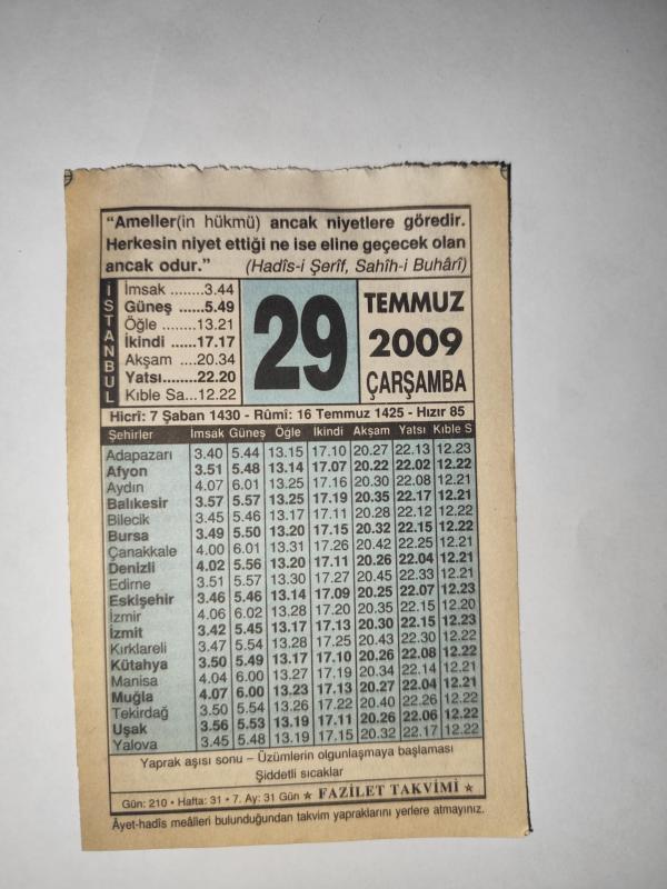29 Temmuz 2009-Orijinal Takvim Yaprağı-Doğum Günü-Söz,Nişan,Nikâh,Düğün ve Önemli Günler Hediyesi-Fazilet Takvimi-Ayet(Hadis)(Hadis-i Şerif, Sahih-i Buhari)-Yaprak Aşısı Sonu ()-Amellerde Niyet başlıklı ürün, Efemera, Müzik, Sinema > Belge ve Evraklar > Takvimler kategorisi altında İkinci El olarak satılmaktadır.