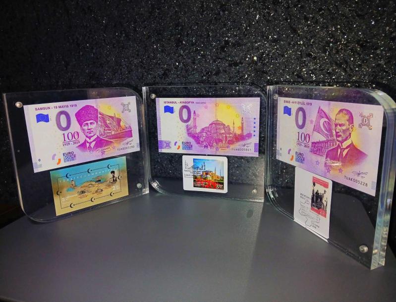 3 ADET ÖZEL PLEKSİ STANDINDA HATIRA 0 EURO KAĞIT PARA VE KONULU PUL, bir ay önce satışa sunulmuştur.