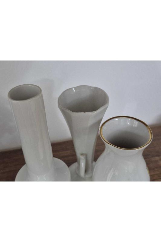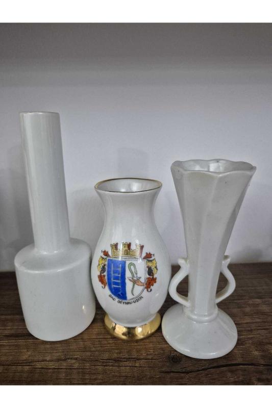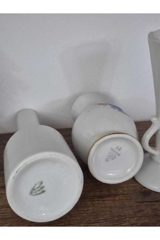 3 Adet Porselen Vazo Antika. 10 12 ve 15cm boyunda. Bir tanesi Bavaria damgalı başlıklı antika/koleksiyon objesinin menşei belirtilmemiştir. Objenin ait olduğu dönem bilinmeketedir.