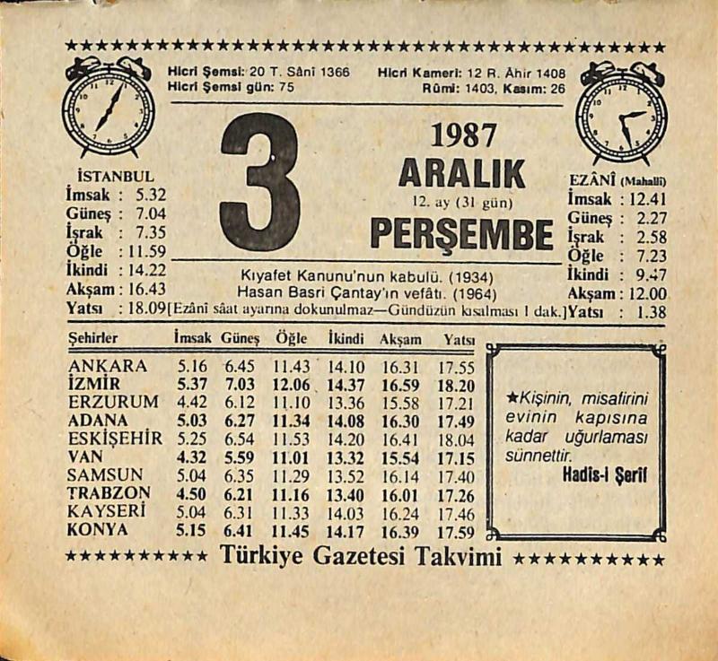 3 Aralık 1987 Takvim Yaprağı - Doğum Günü Hediyesi EFMN15008, en son 20 gün önce güncellenmiştir.