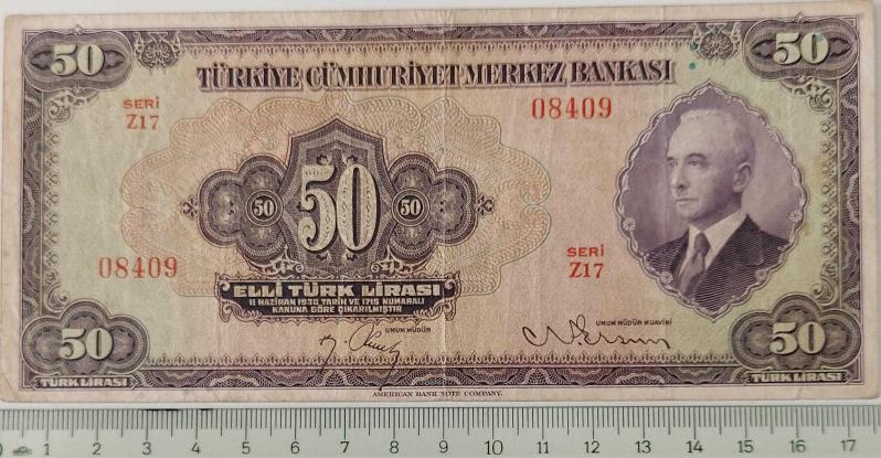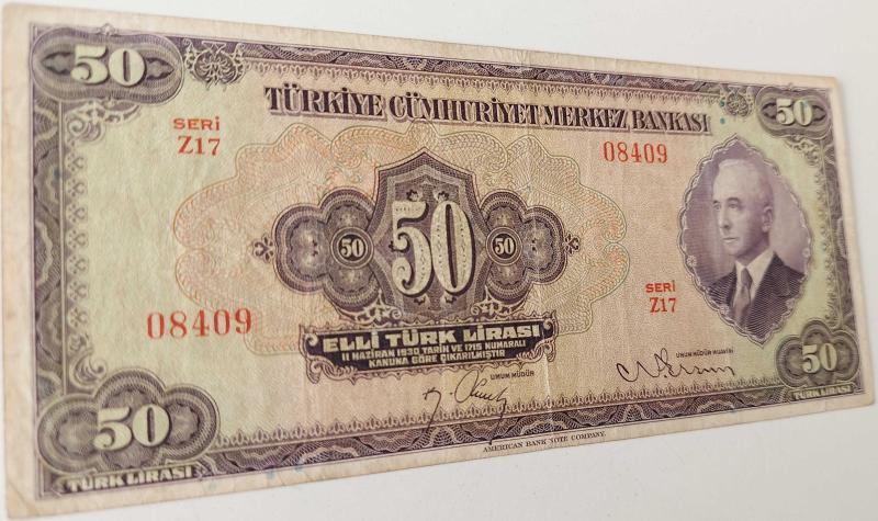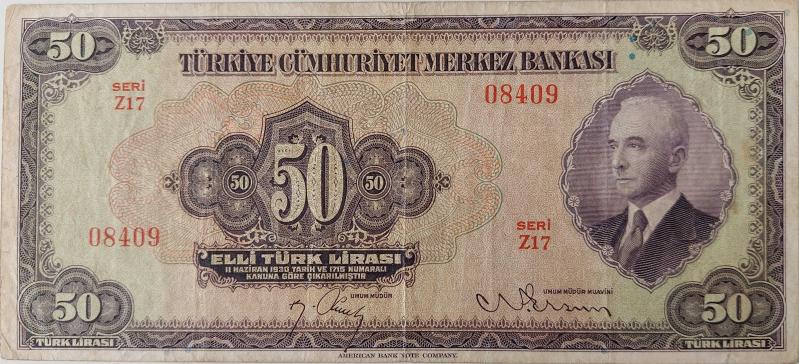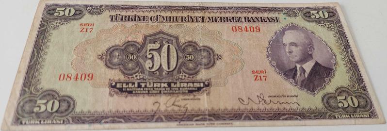 3.EMİSYON 1.TERTİP 50 TÜRK LİRASI SERİ Z17 08409 SERİ NOLU KAĞIT PARADIR. EMİSYONUNUN EN NADİRİDİR. KONDİSYONU ÇOK ÇOK TEMİZ OLARAK DEĞERLENDİRİLMEKTEDİR. KONDİSYONUNDAKİ KATALOK DEĞERİ;2200 DOLARDIR. RESMİNİ GÖRDÜĞÜNÜZ ÜRÜN AYNEN GÖNDERİLİR. TÜM ÜRÜNLERİMİZE BAKMANIZ MENFAATİNİZEDİR. SAYGILARIMIZLA.