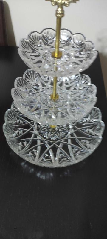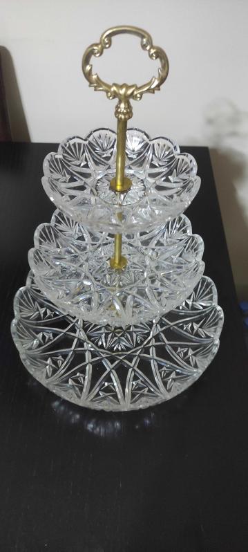 3 Katlı kesme cam Sunum Tabağı eskilerden başlıklı antika/koleksiyon objesi Avrupa menşe’lidir. 1950-1999 arası dönemine aittir.