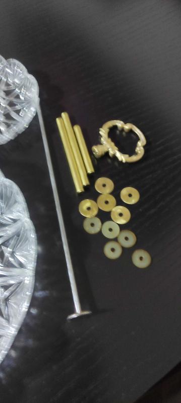 1970 li yıllardan yurtdisindan alınmıştır Altın detaylı, desenli cam tabaklardan oluşan üç katlı sunum tabağıdır. ️orta cam da bir köşesinde çatlak vardı traslandi 4. resimde detaylı gösterildi büyük alt hazne çap 26 cm derinlik 4 cm orta hazne cam CAp 19 cm derinlik 3;5 cm küçük cam hazne çap 14 cm derinlik 3;5 cm sokulmuş halde gonderilecektir kurulum kılavuzu elle cizilip gonderilecektir