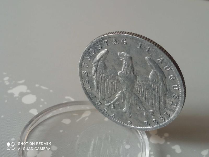 Weimar Anayasasının 3. Yıldönümü anısına hatıra çıkarılan bu madeni para Aliminyumdur. İyi Kondisyonuda kolleksiyonluk bir üründür.