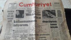 3 MAYIS 1965 CUMHURİYET GAZETESİ manşet sayfası . Boğaz köprüsü konusu tartışıldı. Ankarada gecekondu yapımı hızlandı. Abd. Kalp nakli yapıldı. Hükümetin irticaı kullanmamasını istiyorum adlı eser, Kitap > Süreli Yayınlar > Gazeteler > Türkiye kategorisinde İkinci El olarak satıştadır.