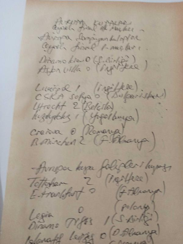 3 Mart 1982 - Avrupa Kupaları Final İlk Maçlar ve Sonuçları - Dinamo Kiev 0 Aston villa 0 - Liverpool 1 CSKA Sofya 0 - Avrupa kupa galipleri kupası sonuçları fotoğraf ve haberi - Islak kalemle a4 kağıdına yazılmış bilgi notu - Tek Yaprak Arkalı Önlüdür adlı eser, Kitap > Süreli Yayınlar > Dergiler > Spor kategorisinde İkinci El olarak satıştadır.