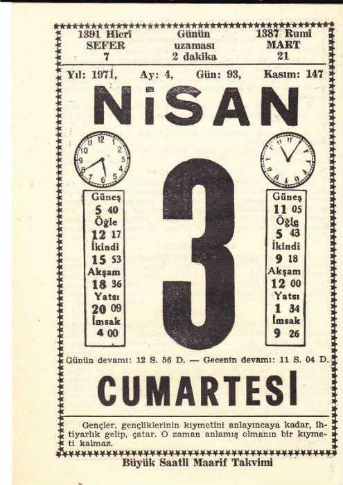 3 NİSAN 1971 SAATLİ MAARİF TAKVİMİ YAPRAĞI, en son 1 yıl önce güncellenmiştir.