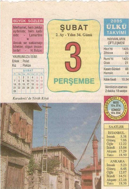 3 ŞUBAT 2005 ÜLKÜ TAKVİM YAPRAĞI, en son 1 yıl önce güncellenmiştir.