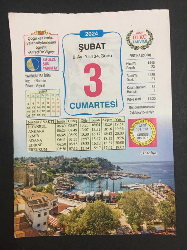 3 ŞUBAT 2024 -TAKVİM YAPRAĞI-DOĞUM GÜNÜ HEDİYESİ-VASIF ÜLKÜ TAKVİMİ,ANTALYA,ALAEDDİN BAYDAR,TOPLUMSAL SÖZLEŞME,ŞAMBREL,ALTIN SATIRLAR,YAVRUNUZA İSİM, en son 8 ay önce güncellenmiştir.