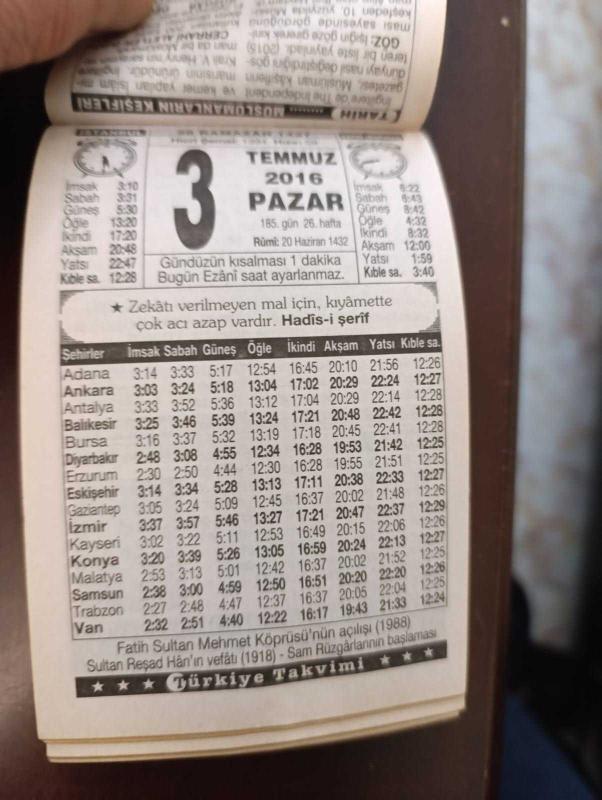 3 TEMMUZ 2016 TAKVİM YAPRAĞI, en son 1 yıl önce güncellenmiştir.