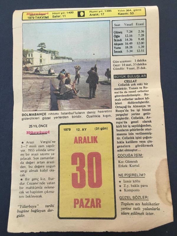 30 ARALIK 1979 -TAKVİM YAPRAĞI-DOĞUM GÜNÜ HEDİYESİ-HÜRRİYET TAKVİMİ,ÇOCUĞA İSİM,GÖRGÜ KURALLARI MEKTUPLAŞMA,ALİ MUHİTTİN HACIBEKİRİN ÖLÜMÜ 1974,RIZA TEVFİK BÖLÜKBAŞININ ÖLÜMÜ 1949,GÜLHANE ASKERİ TIP OKULUNUN AÇILIŞI 1898,YAVUZUN KUDÜSÜ FETHİ 1517, en son 8 ay önce güncellenmiştir.