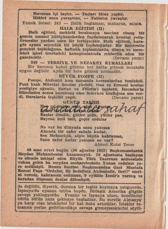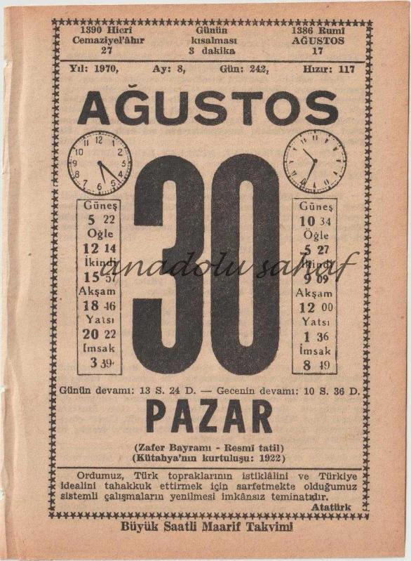 30 Ağustos 1970 / Büyük Saatli Maarif Takvimi